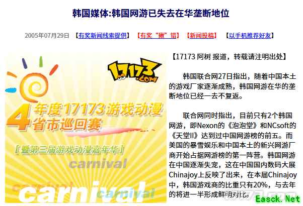 20年前的今天:韩国媒体称韩国网游已失去在华垄断地位