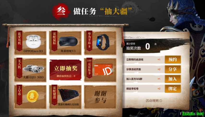 完成相关的预约、分享及加入官方社群的任务后,你还将有机会参与抽奖,赢取大疆无人机、OPPO蓝牙耳机、雷蛇鼠标等实物豪礼。