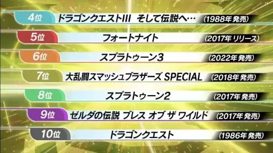 日本国民游戏前100名公布:第一名竟不是日本游戏!