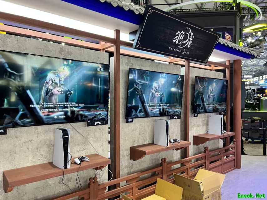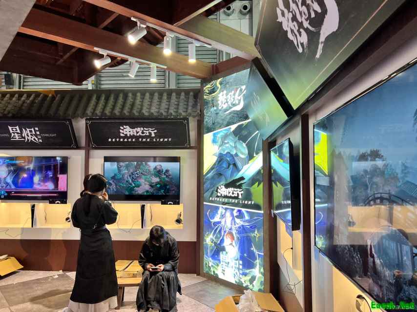 PlayStation展台隔壁是莉莉丝的展位。从现在布置的情况来看,他们在本届展会主推的游戏是即将于8月7日全球公测的《远光84》。如果有小伙伴无法前来现场,可以再等个几天就能直接玩上了。
