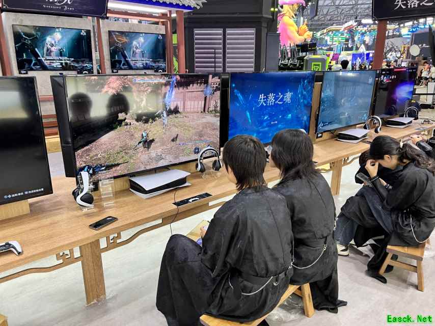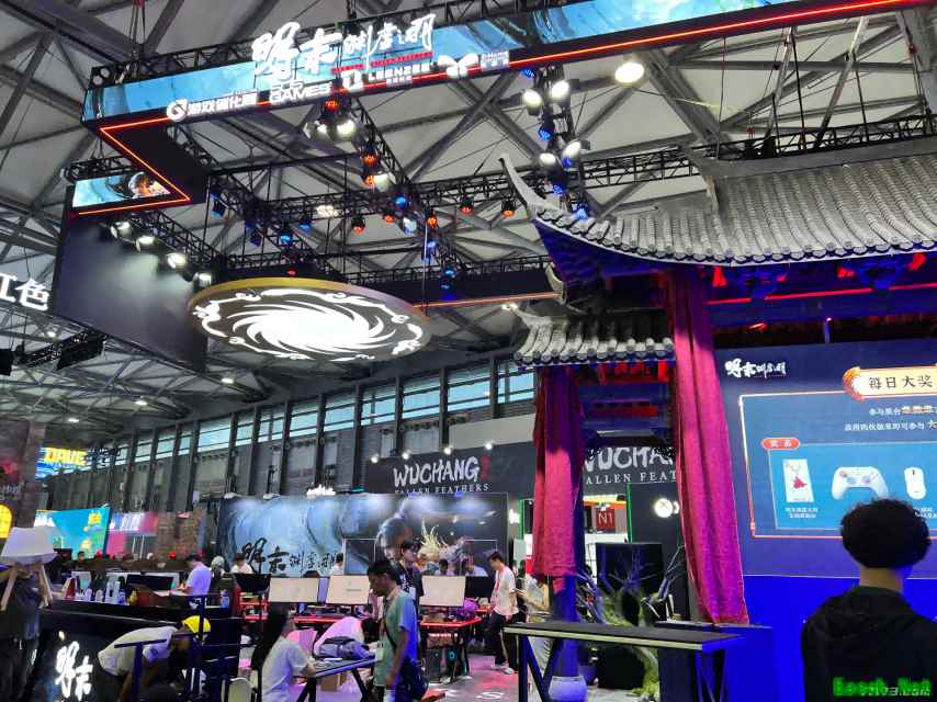 莉莉丝展台的正对面是《明末:渊虚之羽》的展位,他们在现场提供了不少试玩机器等待各位前来体验。如果之前因为网上的各种声音还在犹豫要不要入手,那这次线下实操绝对是绝佳机会。适不适合自己,玩过了才知道。