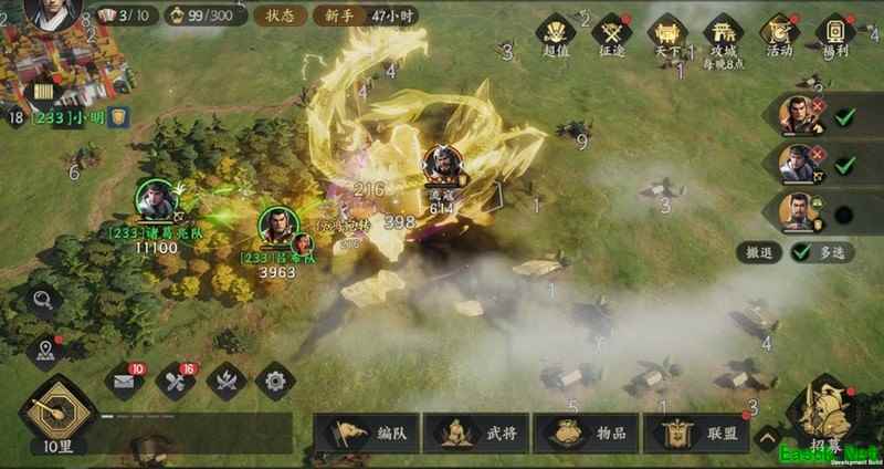 主公下周就要测试啦,听说大家都在悄悄讨论:九州萌新开荒怎么快速领先?(警觉脸) 天啊,你们真是太拼了! 要说九妹我可得提一提,在九州想要占领资源地,完全不用做铺路工,想打哪里就打哪里!只要巧妙运用打地机制,就能抢占先机,赢得开局优势,连肝帝都得连连称赞! 各位主公请悄悄看过来,天策攻略组的大神整理了一份开荒秘籍,连游戏策划都连连称赞!我这就把这份珍藏攻略分享给大家。只要认真看完,新手也能快速进阶,当别人还在辛苦开荒时,你已经能在世界频道收小弟啦!(? ?0?)? 游戏中的核心资源分为木材、石料、粮食和铜币四类,主要通过以下方式获取: 外城资源点可争夺 内城专属资源区域 内城资源建筑收益较高。 内外城同级资源地守军强度与资源收益相同,主要差异在于其他方面。 外城资源需与其他玩家争夺,且可能被抢夺,而内城资源则无此风险。 内城资源地最多只有8块,远少于可同时拥有的外城资源地数量。 在外城资源地中,一级州的最高等级为10级;而内城资源地则可通过扩建提升等级,只要队伍实力足够强大,其等级是有可能突破10级限制的。 内城资源建筑包括磨坊(粮食)、木工坊(木材)、石作坊(石料)和民居(铜币)。玩家可消耗少量资源提升建筑等级,以获取更多资源产出。 内城资源建筑前期升级性价比高,耗资少且产量提升显著。 开启军事府前(主城8级解锁),优先发展林场与石场资源,比例保持均衡,暂不攻打粮草地;开启后可逐步提升铜币产量。 根据玩家所占资源地的势力值进行排名,活动结束后,不同名次的玩家将获得对应的奖励。(完成主线任务可提升资源地占领上限) 最高可获50抽及限定称号奖励。 每日登录并攻占更高级资源地可积累经验,解锁通行证奖励。 铜印奖励包含10次抽卡机会、12万技能经验和限定头像框等。 金印奖励包含法正武将、400元宝、10次抽卡及限定称号等。 玉印奖励包括徐庶武将、600元宝、10次抽卡机会及专属主城装扮等。 累计奖励包含法正、徐庶两名武将,1000元宝、30次抽卡机会、城建装扮及丰富战略资源,建议赛季活跃玩家积极参与。 游戏内最多允许两支队伍同时争夺同一资源地,建议合理分配兵力与策略协作进攻。 主攻队伍优先选择弓兵,重点提升输出技能。 承伤队:依据武将池选择盾兵或骑兵组合,主要职责是承担伤害,为主力输出队伍创造更多攻击机会。 在游戏中,只有成功占领资源地才会固定消耗30点体力,其他操作不会消耗体力,若占领失败也不会扣除体力。此外,九州地区采用PVE无重伤机制,即使战斗失利,也不必担心武将需要长时间恢复,从而影响攻占资源的节奏。 完成主线任务可获得资源,卡在特定等级土地时,扫荡内城资源地三次,获取三倍经验,快速提升等级。 武将技能点可免费重置,若难以击败资源地守军,建议重新分配技能点以提升战力。 游戏内设有武将共鸣系统,所有武将均可免费同步最高等级角色的经验,新获得的武将无需重复升级,可立即形成战斗力。 当主城周边的高级地被占领后,可以前往大世界寻找尚未被占据的高级地,并通过迁城功能缩短主城与目标地块的距离,从而提升抢地效率。需要注意的是,地基只能在联盟领地上建造,具体操作可按照以下步骤进行: 确定目标:寻找未被占据的更高级资源点。 确认最近的联盟领地范围。 ③ 基础建设:耗时10分钟(新手阶段)搭建基地 主城迁移:地基完成后立即迁城。 游戏内每日限制抢地数量,防止高级地被恶意争夺。 核心成长路线 队伍实力决定开荒效率,可通过培养角色与解锁核心功能提升战力。 通过挑战平寇副本获得技能书籍,提升武将技能等级。 科技升级:提升兵种科技以增强实力,开荒期建议优先强化弓兵输出能力。 前期若缺乏核心武将,难以组成技能联动队伍,可在武将界面查看战力,优先选择战力高的武将用于开荒阶段。 武将等级达到5级后解锁天赋点,每提升5级获得3点天赋点数,累计10点可转化为1点才略。建议优先升级掠夺技能,以便在占领资源地时获得更多资源收益。 武将等级达到15级后,可激活其第一个被动技能。 武将等级达到25级后,可解锁第二个被动技能。 武将等级达到30级,解锁专属武器与谋略战斗。 校场7级可解锁第二位副将,单队最多上阵3名武将。 兵营升至9级可解锁二阶士兵。 军事府在主城8级时解锁,可提升带兵上限,是前期开荒阶段需要优先升级的建筑之一。 推荐队伍搭配 主力弓兵队伍:王平、黄月英与糜竺组合。 承伤队(盾兵):关兴、张苞与魏延组合 免费获取方法如下 王平:首次抽奖新手 黄月英:凤鸣新程活动,免费获取武将与兵书。 糜竺任务开启,剧情随之解锁。 关兴张苞任务奖励获取方式 魏延:次日登录领取奖励 以上两支队伍在前期作为平民开荒阵容表现非常稳定,能够顺利度过开荒阶段。游戏内获得的元宝建议直接用于抽取新手卡池,其中标注豪杰的武将整体强度较高,可作为上述队伍的优质替代选择。黄月英和魏延是队伍的核心武将,建议最后进行替换。 3. 0氪开荒推荐 推荐队伍搭配 主力弓兵队伍:王平、黄月英与糜竺搭配。 承伤队(盾兵):关兴、张苞与魏延组合 免费获取方法 王平:新手首次抽取 黄月英:凤鸣新程活动,可免费获取武将与兵书。 糜竺解锁主线剧情 关兴张苞:主线任务奖励丰厚 魏延:次日登录即可领取奖励 以上两支队伍在前期作为平民开荒阵容表现非常稳定,能够