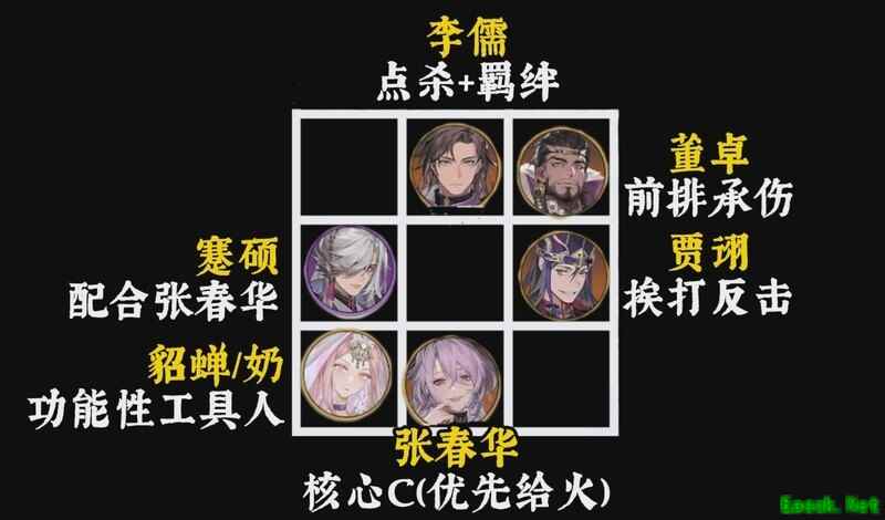 在魏蜀吴群四大势力中,国家队通常需要高投入才能发挥实力,至少核心角色要有足够的练度。但对于零氪玩家来说,也有一套实用且容易上手的阵容——毒队。当前毒队主要分为三种体系:吕布毒队、春华毒队以及火毒队。接下来我们就从这三个方向出发,详细了解一下毒队的搭配与玩法。 这是一个以贾诩与李儒为核心的辅助放毒阵容,配备双前排(贾诩和董卓),搭配双输出位李儒与吕布。该体系中,李儒负责针对敌方残血单位进行精准打击,而吕布则利用群体伤害快速清场。最关键的是优先给吕布点燃怒气,因为贾诩和李儒的技能需要一定时间启动,将其作为辅助挂件为吕布提供爆发输出更为高效。 贾诩适合放在前排先手承伤,另一前排位置由董卓担任,不仅能享受中毒加成,还能保护后排,提高阵容容错率。中排安排吕布与李儒,李儒在有怒气的情况下可优先出手,其大招具备单体击杀能力,并且效果受中毒层数强化,十分契合毒队机制。若选择上吕布,则主打范围伤害,配合贾诩与李儒的持续输出以及中毒效果,能实现高效收割。 最后加入貂蝉用于羁绊加成,提升队伍挨打增伤与免伤能力。第六人可根据情况选择陈宫,增强吕布开局免控能力,或者选用孙权等具备拉条功能的角色,进一步优化出手顺序。 阵容思路与此前类似,只是将核心输出换成了张春华,相比吕布更偏向收割定位,具备更强的斩杀能力。张春华建议优先点亮一火,可大幅提升大招回战意效果,若资源充足则推荐五火满配。为应对其容易被控制的问题,可用蹇硕来清除负面状态,也可通过拉条、调速等手段缓解。前排搭配较为灵活,可选择董卓加貂蝉组合,负责承伤,貂蝉也可替换为其他治疗或盾兵武将;另一种方案是诸葛果搭配刘备,组成4群雄2蜀国体系,保证生存才能打出足够输出。整体需注意保护张春华,避免其被敌方集火致残或秒杀。 由于群雄队伍缺少治疗核心,因此选择火烧队中的步练师作为主力奶妈较为合适。在火烧队中加入毒系搭配,主要是为了弥补队伍输出不足的问题,避免战斗中途被敌方压制。通过施加中毒效果,不仅能加快敌方减员,还能有效限制其回血能力,令对手非常难受。周泰具备优秀的承伤能力,搭配步练师可强化吴国阵容的整体表现,实现一回合内同时挂火又带毒的效果,极大提升压制力。 |
