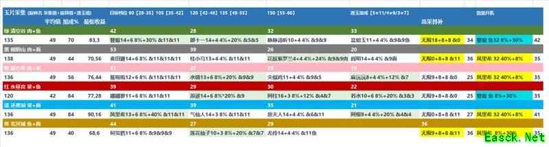 爆炒江湖采集规划指南:涵盖遗玉与食材高效采集策略,助力玩家合理搭配厨师与遗玉,最大化资源收益。 2025年3月6日,遗玉采集会溢出,主力采集应尽量安排在池塘、牧场和鸡舍。 2024年4月9日,新二孔采集阵容:桔云使用肉面、银鞋搭配肉肉或面面遗玉,总点数为33点,可实现无限在肉面遗玉采集,根据个人需求灵活分配。 2024年1月8日,新遗玉光环厨搭配方案:惊雷三绿孔精品厨,可镶嵌菜类或鱼类玉石。使用菜加鱼组合,放置在永昼宫,全体成员额外加4,可替换下游遥,换上采鱼,并记得镶嵌采鱼百分比玉石。 2024年5月27日,新高采厨建议:可将青天判官安排在牧场,替换水镜,或将水镜调回朝阴山。青天判官适合采集遗玉,因有2个绿孔,放置何处皆宜。 建议优先采集食材,暂时无需着急获取遗玉,注意收集牛奶类食材。 风里希、花妖紫罗兰、卷卷猫和水镜已搬迁至牧场。 遗玉采集 v04/08/2024 食材采集 06/03/2025 -------------------------------------------------------------------------------------------------- II 偏遗玉采集方案(紧急需求版) III 注意点 组队建议:四人团队,一至两位高数值成员负责拉区间,一至两位高采集厨师提升百分比收益。 目标是高档位采集区间和多塞采集厨,实现收益最大化。 三个关键点助你优选高采厨遗玉 无限装面,绿黑黄三色兼顾。 风里希装面,黑粉红皆可兼顾。 簪娘装鱼,绿红兼顾。 根据需求灵活调整,无限风里希簪娘,优先选择五星金靴,实用性强,非常好用。 目标是依据采集者自身最高的采集属性,配合同系采集类遗玉,实现跨区域采集能力。 前期能装的都装上,后期换装需要大量符文和真实伤害材料,代价不菲。 四星五星厨师培养方案选择 绿孔数量越多越好,优先选择金色鞋子,可跨区补充。 五星三绿孔,玉弥香与麦田姬,鲨啦啦。 四星三绿孔,卷卷猫与何贺鹤。 五星高采绿孔,句芒桂小乌,嘟嘟萝气仙人息夫人。 四星高采两绿孔,静静聆听,盐如玉,尖椒鸡,毛太郎(感谢二楼大肌哥提醒) 因为 四星两绿孔厨师采集总和为25,7加9加9等于25。 五星一绿孔厨师采集总值为14,加上11等于25。 所以 四星二绿孔厨师,总采集超过7即可培养。 五星二至三星绿色孔厨师,作为厨神神器,放置位置与使用方式可根据个人需求调整。 氪金大佬无视,闲鱼玩家跳过 若有错误,欢迎留言指正。 感谢小鱼大佬的精彩分享,非常棒。 |