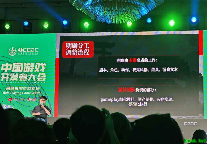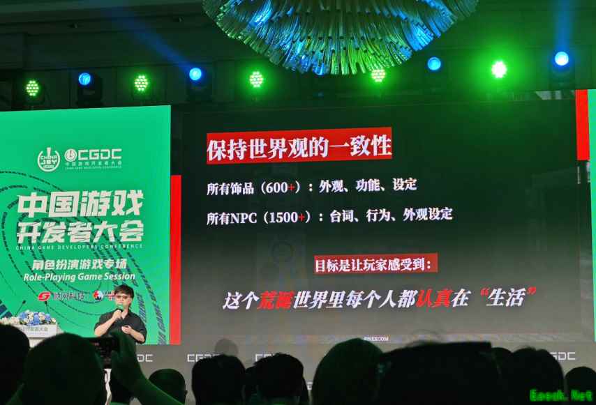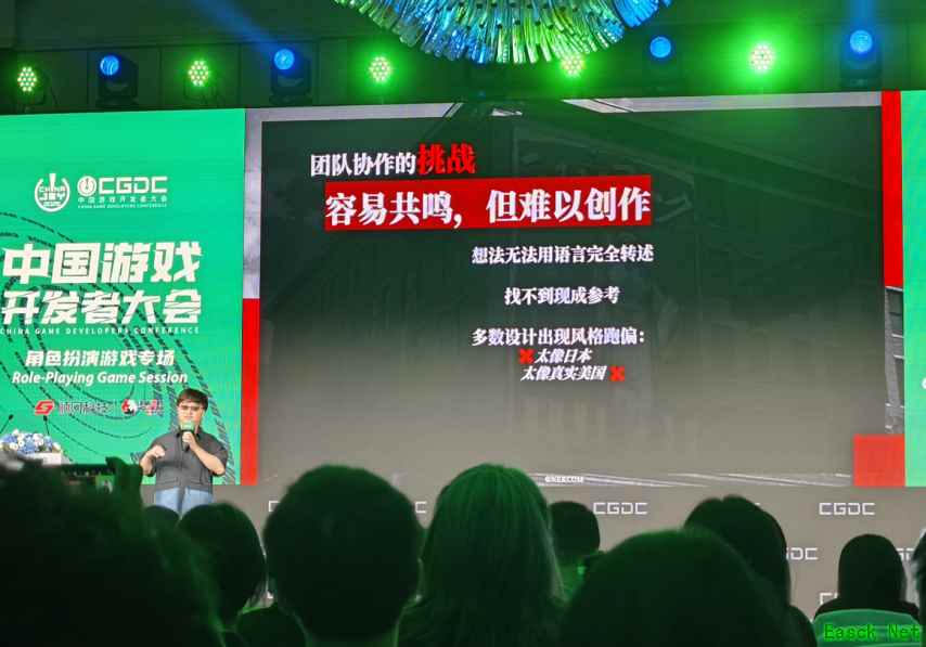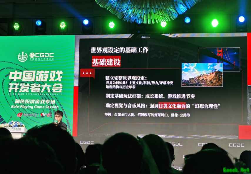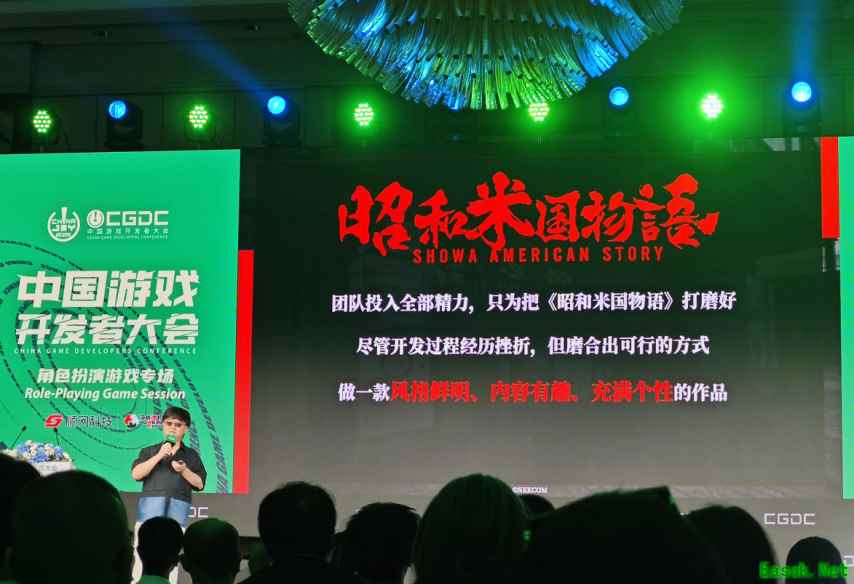 《昭和米国物语》,算是近两年国产游戏中,颇为特别的一位了。 这款游戏当初靠着“日本反向殖民美国”的奇葩设定,博得了大量关注,游戏里各种neta日本作品的元素,唤起了不少老二次元的记忆。 因此本作也被一些玩家戏称为是“村里的第一个街溜子”。 不过,游戏在去年11月发布完第三部预告片,宣布于今年发售后,便又陷入了长时间的沉寂。 前些日子还身陷“炒币”风波,不少玩家都怀疑制作组是不是开发遇到挫折要延期,又或者是跑路了。 而在本次ChinaJoy中国游戏开发者大会角色扮演游戏专场上,《昭和米国物语》创意总监&铃空游戏CEO罗翔宇登场,并分享了题为《在工业化生产中保持"作者性"的挑战与思考》的主题演讲。 在此次演讲中,罗翔宇不仅分享了一些开发过程中积累的经验,还解答了几个玩家关心的问题——游戏到底是什么样的?为什么每次发完PV就没动静了? 相信很多玩家在看完PV以后,都会误以为这是一款像《丧尸围城》一样的丧尸割草游戏。 但罗翔宇表示,《昭和米国物语》实际上是剧情驱动的RPG游戏,游戏有着至少25小时的主线流程,同时还有大量支线任务和迷你游戏填充。 同时开发组还为游戏设计了超过1500个可交互的NPC,而且这些NPC的台词,会随着玩家剧情推进发生一些变化。可以预见的是,游戏在剧情方面的堆量是足够的。 此外,虽然此前PV中展示过战斗画面,但在《昭和米国物语》中,战斗并不是最重要的部分。不过,他们仍然为游戏设计了有十余种武器模组,和三百多把武器。 显而易见,《昭和米国物语》的游戏体量一点不小。据罗翔宇分享,目前内部+外部的参与人数,已经有150人之多。 正因如此,项目在开发过程中遇到的最大问题,就是如何在大规模的团队协作中,依然保持游戏独特的「作者性」。 经历了一些试错后,目前铃空已经克服了这个难题。但依然非常依赖罗翔宇个人做许多关键决策。 因此在分享中,罗翔宇表示自己基本白天开会,晚上还要再加班,空余时间也是在忙工作。从他的描述中,可以看到对这个作品的心血投入是非常大的。 至于游戏为什么每次发完PV就没有动静了,罗翔宇解释道:「并不是故意在装死,只是把全部的精力都放在了开发上。我们只想在准备好的时候,在特定的时间节点才会出来做宣传。」 以下为17173整理的罗翔宇演讲实录: 《昭和米国物语》是一款怎样的游戏? 可能很多人都看过我们发的前两支PV,有了解到这是一个什么题材的游戏,但并不清楚这款游戏是如何游玩的。 首先,我想先简单介绍一下,《昭和米国物语》是一款什么类型的游戏。 他是一款剧情驱动的RPG,有着超过25小时的主线流程,主线部分非常的线性,没有多结局。 主线以外有数量众多的支线故事和迷你游戏。这些都会随着主线流程的推进逐步展开。 虽然战斗并不是这款游戏的重点,但我们依然往里面加入了丰富的内容。 战斗很强调动作性,有十余种特性完全不同的武器模组,每种武器的出招方式和使用技巧都有着鲜明的区别,并由此派生出上百种武器可供玩家收集和使用。但是战斗的难度远远低于魂系游戏。 角色有等级,升级之后可以获得更强的能力学习更多技能,也有各种装备饰品可供搭配使用。游戏通关之后可以继续探索这个世界。 《昭和米国物语》为什么是一款这样的游戏? 那么,昭和米国物语为什么会是这种类型的游戏?因为我认为对《昭和米国物语》这个游戏感兴趣的玩家,多半都是被这个游戏的世界观所吸引。他们想要去看看这个游戏的世界到底是什么样子,究竟讲了一个什么故事,以及,里面埋藏了哪些有趣的细节。 所以,我们把大量的精力,都花在了如何构建这个世界,如何在里面填充足够多且足够有趣的内容,让玩家在探索的过程中经常能够发现各种惊喜。 今天我分享的标题是“《昭和米国物语》:在工业化生产中保持“作者性”的挑战与思考。” 铃空游戏创立14年来,一直致力于制作具有创作者强烈个人特色的游戏作品,我们的上一款游戏《DYING:Reborn》,在游戏设计方面和剧情方面,我几乎是放手交给团队里的游戏设计师一个人来负责的。我参与的部分只有鱼头人这个形象的设计而已。 为什么我们在制作游戏时会如此强调制作者本身的个性呢? 因为我和核心团队一致认为,比起集体创作、四平八稳的罐头3A游戏,玩家应该会更喜欢个性鲜明的游戏作品。我们不想用庞大的资金去做一个补齐了所有短板却缺乏特色的游戏,我们更想要集中资源去做一款长板足够突出的差异化作品。 从前面的介绍中可以看到,《昭和米国物语》是一款体量很大的游戏,大体量游戏的开发分工和流程管线,与保持创作者设计风格之间会存在冲突与挑战。 在《昭和米国物语》的制作前期,我们对于还要不要在这种规模的项目中继续坚持“作者性”产生了摇摆,我们经历了一些波折。 虽然《昭和米国物语》这个题材是我想的,我也做了基础的世界观设定。 但在当时的阶段,我没有打算自己来负责大部分的设计类工作,因为根据我过往的游戏开发经验,我倾向于认为把设计节点都卡在一个人身上会影响开发的节奏,而且一款大型的RPG项目的内容量很大,一个人来负责全部的设计工作也不太现实。 再加上,我也很想让团队里其他的编剧和做概念设计的人多一些锻炼的机会。于是,我分了许多设计类的工作给其他员工,例如让他们也参与