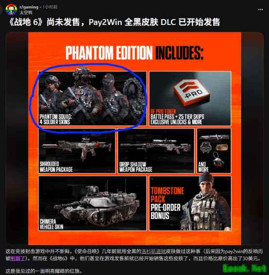玩家吐槽《战地6》付费黑色皮肤:或影响游戏平衡