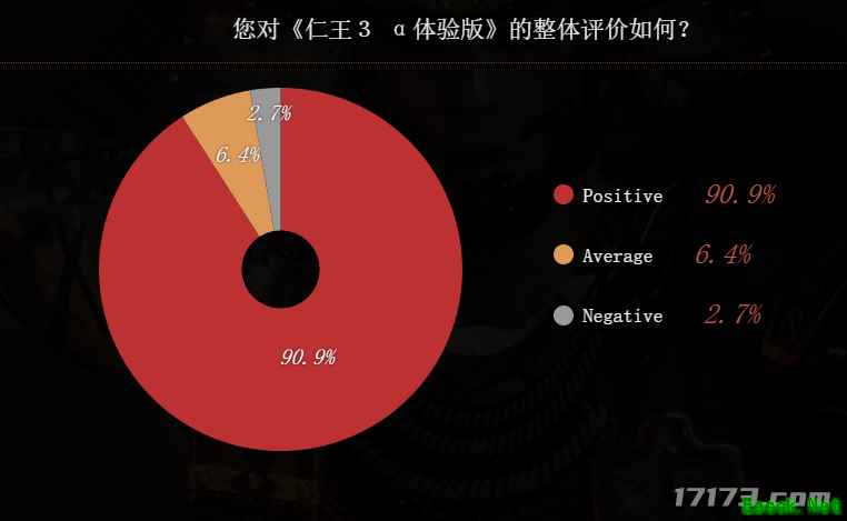 根据官方发布的问卷调查结果,《仁王3》α体验版获得了90.9%的好评率,这一数字包括了“非常满意”和“满意”的评价选项,表明大多数玩家对游戏的整体表现持积极态度。