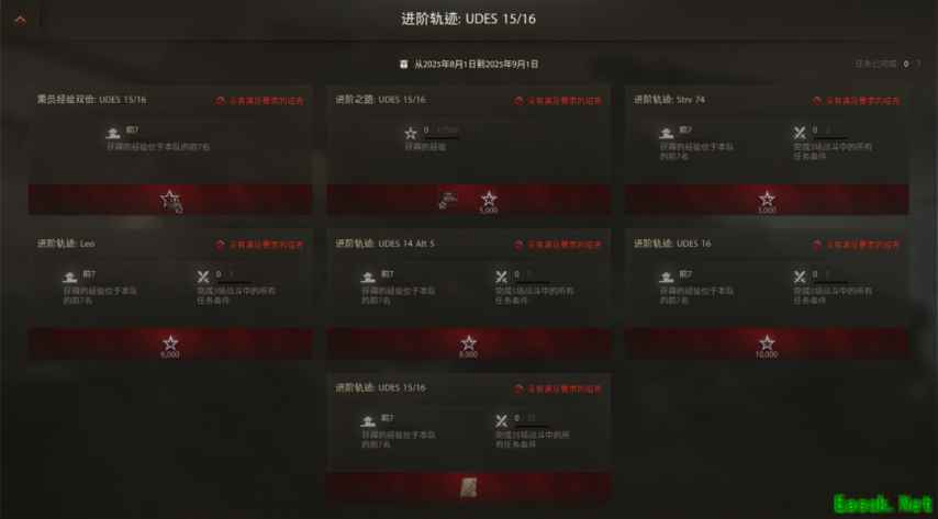 作为V系科技树的顶级中坦,UDES 15/16可谓是将整条线的偷炮玩法发扬光大。它的各项属性不算差,但是在标准战斗中很少能见到这辆坦克,且又少有见到这辆坦克“大杀四方”的时候。这其中和它那操控手感较差的液压模式和比较“飘”的炮控表现有关,有液压机制俯角能压的很大,但是想调整到仅露出炮塔的“无敌”角度就很考验车长们的技术水平;440点高单发的火炮打人很疼,不过低穿深和“飘逸”的炮控玩起来确实不爽。UDES 15/16上手难度很高,但是它的战斗表现上限很高,当您熟悉这辆坦克的“习性”,骑坡卖头打出逆风翻盘局都不是问题! 进阶轨迹活动 进阶轨迹活动每个月都将会轮换更新新的线路活动,您驾驶当月所指定的线路战车战斗即有机会获得额外的经验、乘员经验以及各类游戏物资。这会大大地加快您练车的速度。