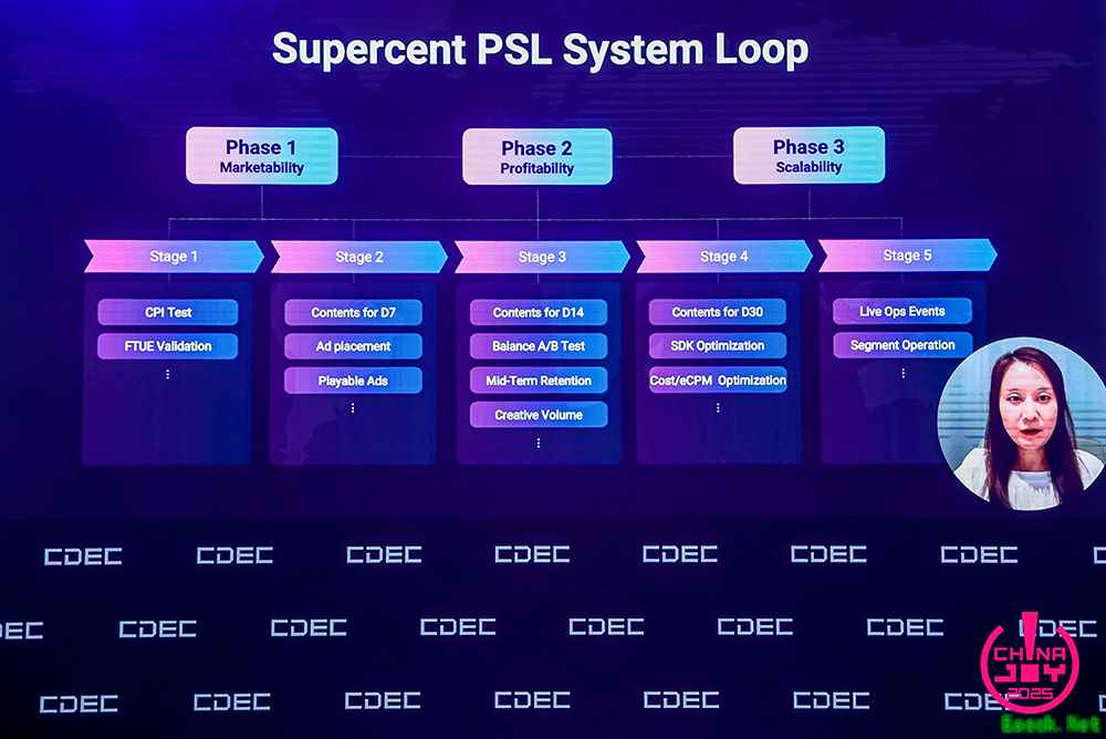 Supercent全球发行总监权瑞希分享了公司如何通过“AI驱动”和自研的“发行系统循环(PSL)”应对快速变化的游戏市场环境。她指出,内容消费方式的改变、时间争夺的加剧,以及生成式AI的崛起,正重新定义全球游戏出版方式。Supercent通过PSL系统实现了多款全球性热门游戏的持续发布,并逐步从超休闲扩展到混合玩法领域。公司成立三年内,全球累计下载量突破12亿次,月新增用户达6000万,现已跻身全球游戏发行商前五强。会上还展示了公司在营销预测、自动化测试和视频数据分析中的AI实际应用。Supercent欢迎有志于走向全球的中国开发团队与其合作,共同探索更广阔的国际市场。 ![]() Supercent全球发行总监 权瑞希