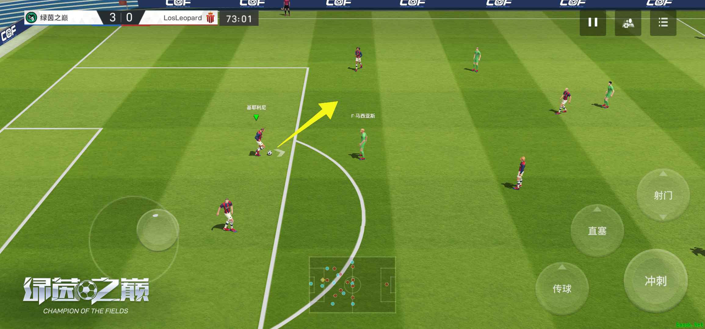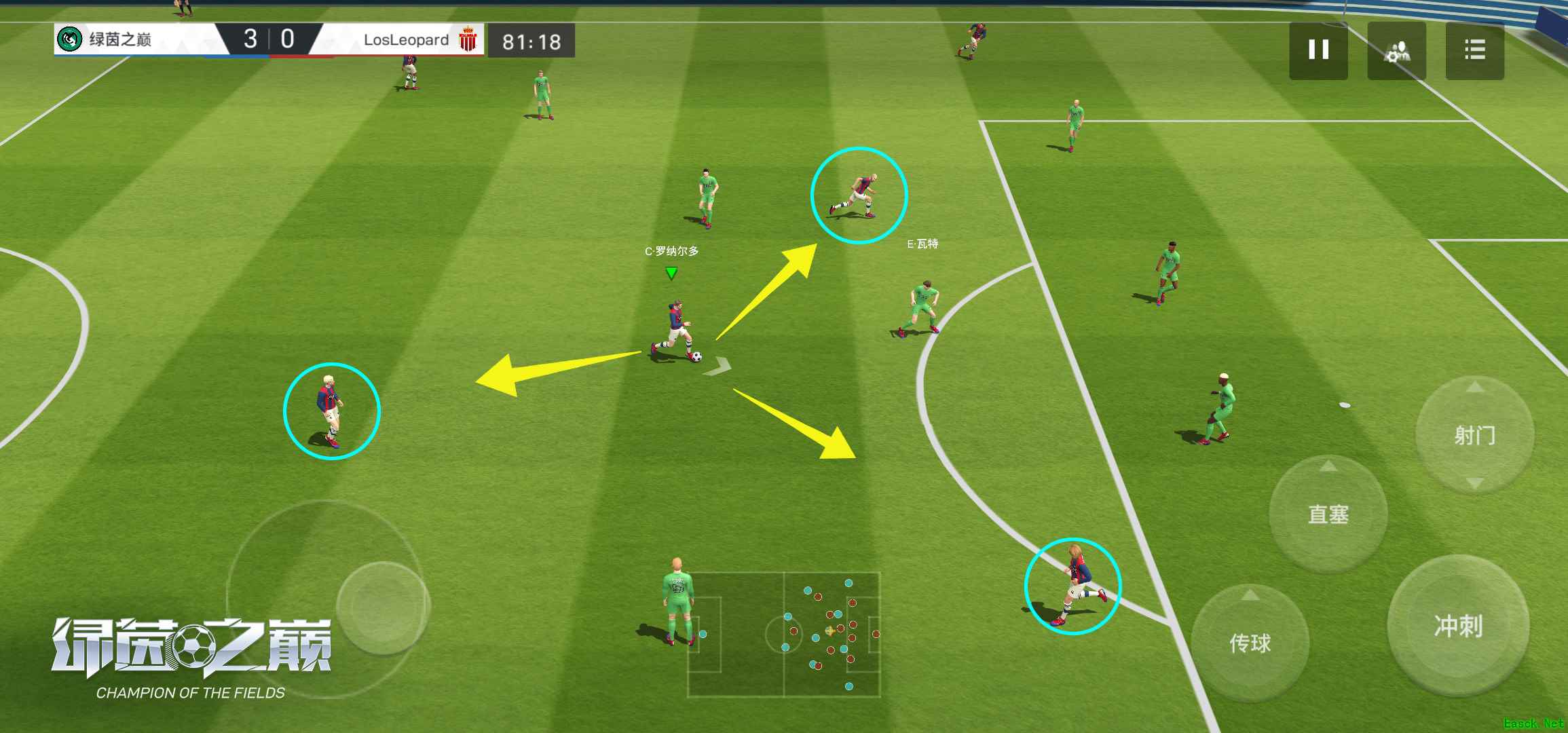 最后,由于4-3-3阵型偏向进攻,因此对后卫的个人防守能力以及整条后防的团队防守要求较高。同时,由于中场只有三名球员,所以再球向前推进的过程中,中卫和边卫都需要承担一部分出球的任务。因此,像卡瓦哈尔、皮克、马塞洛、坎塞洛这样具备出色防守能力,也拥有一定的出球能力的后卫将是组建后防线非常好的选择。 合理操作,传控打法比肩豪门 球员在后场组织时,耐心地在传导球,直到发现前场有机会向前推进时再向前推进,通常通过中后卫球员的过度来调整球队的阵型站位,以及对球权的控制。在皮球传递的过程中,球队整体要慢慢向前移动。