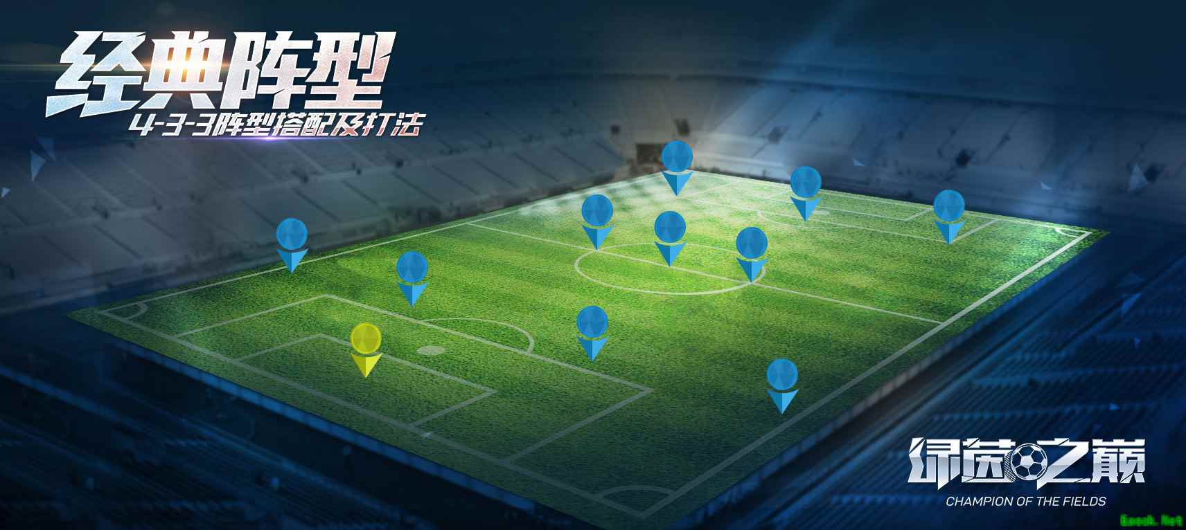 成为战术大师,组建完美阵型!网易公平竞技足球手游《绿茵之巅》即将公测,期待您的加入!一键更换阵型,助你应对风云突变的绿茵赛场;《绿茵之巅》为玩家提供了十种不同的预设阵型,满足不同风格玩家的需求,体验传奇教练的快感!今天要介绍的,是一种进攻为主的足球战术,4-3-3经典阵型。