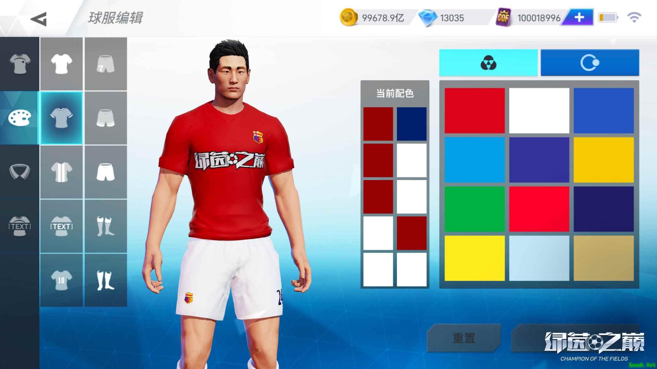 绝不撞衫 球衣深度定制 在《绿茵之巅》,除了已经编辑好的球服外,玩家还可以自己亲手设计球服。球衣花纹、领口款式、字体样式等选项都可以根据玩家的喜好来定制。配色上,袜子、号码、赞助商字样等每一处细节,都可以更改颜色,并且提供渐变色谱调配颜色。在【俱乐部】-【球服】页面花上一些时间,全方位定制带有你个人风格的队服。