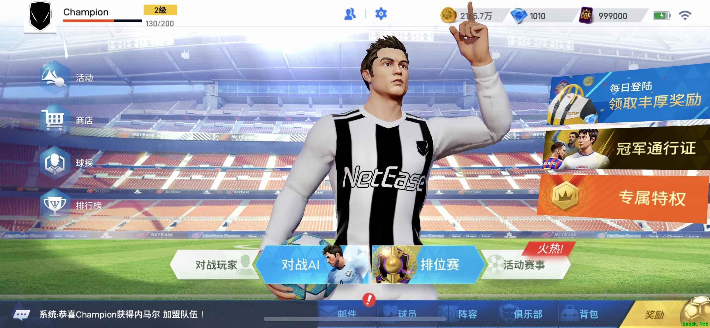 现场玩家对战图 时尚潮男,全新形象CJ首曝 《绿茵之巅》全新版本的游戏界面设计没有遵循普通的设计架构,而是采用了极富个性的按钮设计,别具一格的界面构图,整个界面主次分明,时尚而不简单,更加贴合现代足球的审美,能够为玩家带来极具震撼力的视觉感受。球星采用多维人物建模,精细到脸部细节的模型刻画,让人物模型栩栩如生,生动自然。融入动作捕捉技术,球员动作表现流畅真实,堪比真人,宛如绿茵场上的时尚潮男。