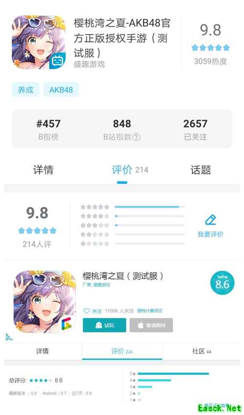 而之前并不了解AKB48偶像团体的路人玩家,在感受过游戏之后,也为《樱桃湾之夏》的制作水准所折服,纷纷给出好评。目前,《樱桃湾之夏》在bilibili专区的评分为9.8分,TapTap平台上的评分为8.6分,口碑极好。