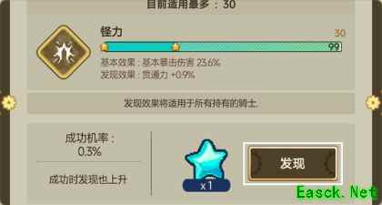 在星之海岸获取的超级星可激活骑士的潜在能力。 每位骑士拥有独特潜能及相应属性加成。 发现度左右骑士的探索成效,成功发现可提升其潜在能力的发掘程度。 骑士的发现度越高,潜能越强;晋升与觉醒程度决定了发现度的上限。