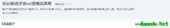 这一消息引发了广大网友的热烈讨论,玩家们纷纷猜测昊恺与Uzi之间到底有什么矛盾,以及他所说的“所有事情”到底是指什么事,以至于能影响名人堂?截止至发稿时,话题“前lpl解说手撕uzi要爆其黑幕”已经登上了贴吧热议榜。