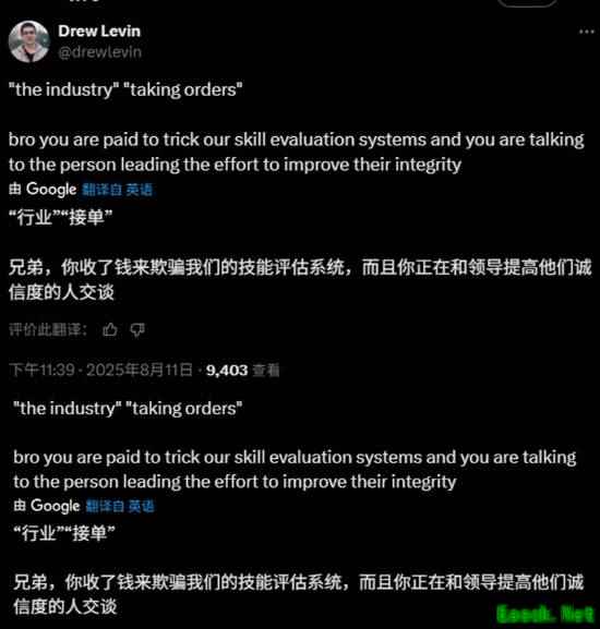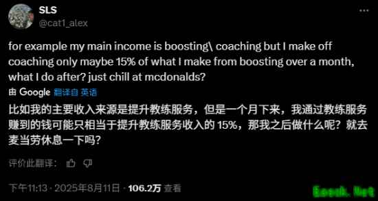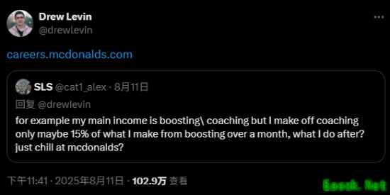 而Drew Levin转发了这条帖子,并附上了麦当劳招聘页面的链接,似乎在开玩笑说SLS是时候找份新工作了。“兄弟,你明白你赚钱的方式会毁掉别人的游戏体验吗?我并不想为了维护这一点。”Drew Levin回应称,“你把这些代练行为称为‘行业’?兄弟,你收了钱并欺骗我们的评估系统,而你却在和那些致力于提高评估系统可信度的人谈话。”