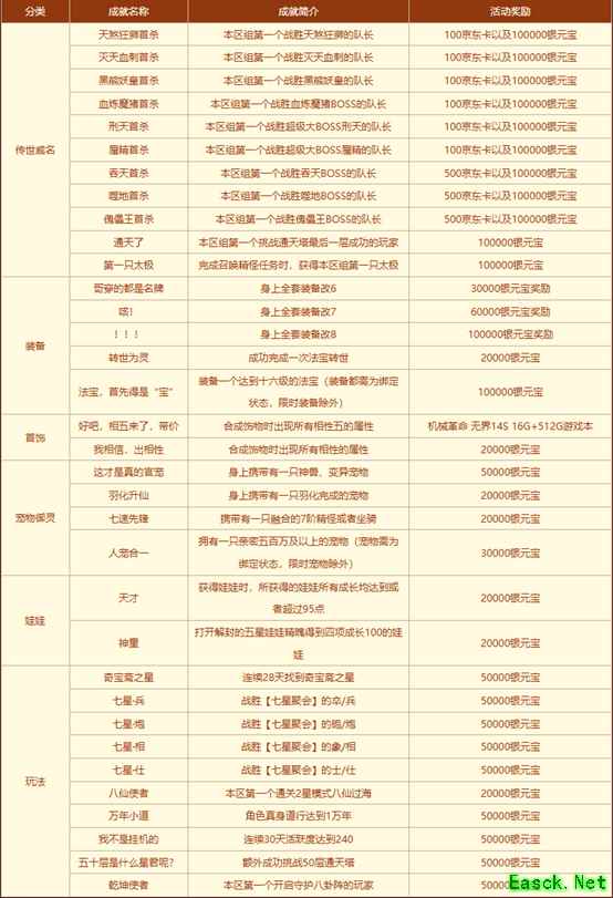在新服对外开放前,首充额度达到相应首充条件,则必定获得对应的豪华首充礼包。 成就达人