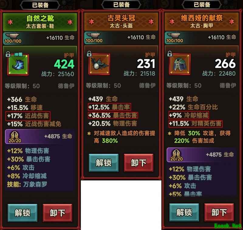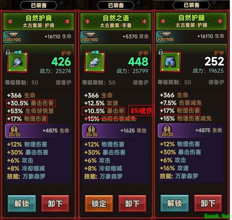 在迷雾大陆S3赛季中,德鲁伊地陷流成为挑战150层的关键玩法。本文将针对当前玩家普遍遇到的难点,解析为何照搬榜一装备仍难以通关150层,并提供详细的装备配置与词条选择建议,助你高效通关。 最近许多玩家反映,虽然按照榜单第一的装备和属性搭配,却难以突破150层,究竟是什么原因导致的? 德鲁伊鸟普是目前输出最强的BD之一,但150层终究难度不低,想要通关仍需下一番功夫。 其次,尽管鸟普输出能力强,但对装备的要求非常严格。许多玩家容易忽略近战伤害、对精英伤害和物理伤害这些属性,认为它们不重要,但事实并非如此。要通过150层,这些属性是必不可少的。 第一名的配置很可能是竞速向的装备,这类搭配适合快速通关,但过了150层后可能就不再适用。比如迁跃手套,若打BOSS时间超过30秒,伤害会大幅下降,不适合长期战斗。另外,森罗万象的输出不稳定,波动较大,也不利于持续冲层。 可将迁跃手套替换为万龙之手或织燃护手,森罗万象则可用云林之韵替代。 红框内为必备属性,缺一不可。 红色框内为必备属性 红框内为必备属性 关于装备词条的选择,这里是以未开启炉子(缺少20暴击)为基础进行搭配的。装备基础词条中,带有红框的是必备词条,若你的装备缺少这些,建议优先制作对应部位的装备,先做出一个词条,再通过洗练获得另一个。如果基础词条不合适,暂时不要浪费铸魂石去洗练神铸属性,可先用作过渡装备。 神铸属性要求如下:所有装备需达到12%物理伤害加成,共十件,目前使用铸魂石实现全物理伤害较为容易;暴击伤害需全部为30%;攻击加成推荐6%,也可选择少量3%;所有装备必须拥有万象森罗属性。 护肩、手套、鞋子、项链和戒指这五个部位的神铸属性四,以及武器和副手的基础词条,需确保有6条冷却缩减(7条中保证6条)。 神铸属性四要求头盔、胸甲、护腿部位的暴击率提升至10%。 武器和副手神铸属性推荐选择8%伤害加成。 拥有铸魂石后,神铸属性调至完美难度不大,除第三属性外均可达到完美。 武器与副手的基础属性要求较高,需单独说明。必选36.5暴击伤害词条,未开炉者建议搭配12.5%暴击率。 剩余词条优先级:20.5%近战伤害提升优于10%全伤害加成,接着是11.5%对精英伤害,与22%攻击力百分比相当,优于20.5%物理伤害和15%攻击速度。 推荐武器和副手尽量选择带有冷却缩减属性的装备,若实在无法满足也只好作罢。 武器词条推荐选择36.5%暴击伤害,其他可选词条包括22%攻击百分比、12.5%暴击率、9%冷却缩减、10%伤害加成、20.5物理伤害、15%攻击速度以及11.5%对精英伤害。 副手推荐选择36.5%暴击伤害作为必选词条,其他可选词条包括:22%攻击加成、12.5%暴击率、9%冷却缩减、10%伤害增强、20.5物理伤害、15%攻速提升以及20.5%近战伤害。 武器和副手装备是本攻略中最难获取的部分,建议选择暴击伤害36.5%作为必选词条,搭配三个高增益的有效词条。 关于攻击速度的问题,很多玩家建议堆满攻速属性,但实际上攻速的计算机制较为复杂,涉及多个档位的设定。如果没有达到关键档位,攻速属性几乎起不到作用,还容易浪费珍贵的词条位置。而且是否穿戴减速装备也会对攻速产生影响。因此,我选择完全放弃攻速属性,在确保其他关键属性的前提下,也能大幅降低装备选择的难度。 项链和戒指对精英的伤害加成,有更好。 (完) |
