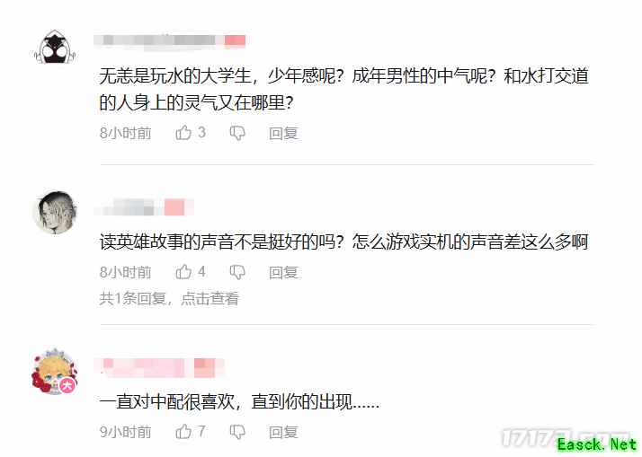 但令不少玩家难以接受的是,参与“无漾”中配CV的表现却有失水准,许多台词都采用了过于夸张的棒读方式,听着十分“辣耳朵”。 此外,还有大量玩家跑去中配CV赵洋的个人B站账号下方留言抗议。