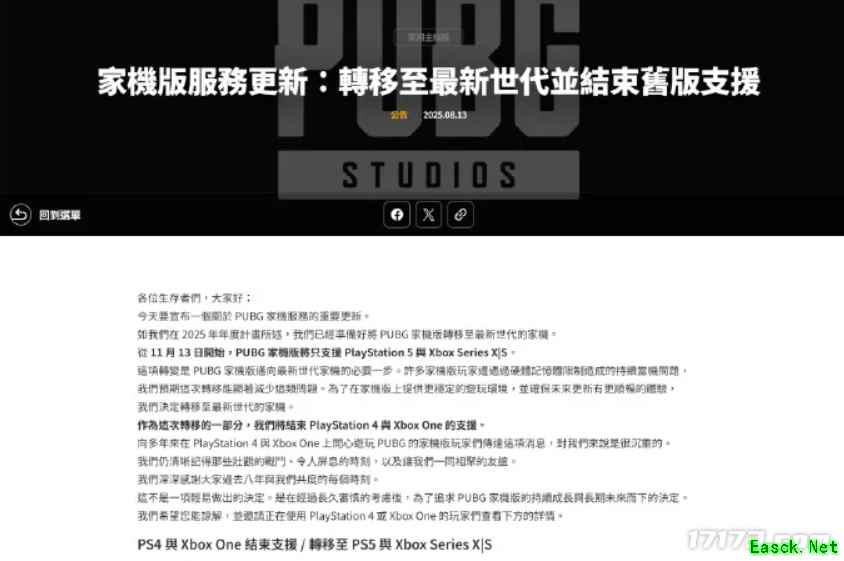 尽管多数人是因为标题党而点击查看,但《原神》宣布终止对PS4的支持,依旧引发了不少玩家的感慨。出人意料的是,继《原神》之后,《绝地求生》官方团队也在8月13日宣布,将于2025年11月13日起停止在PS4和Xbox One平台上的服务。