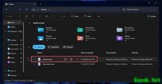 与过去不同,Windows 11的文件资源管理器默认打开的不再是显示所有驱动器的“此电脑”,而是全新的主页,该页面为用户提供了快速访问用户文件夹、收藏夹和共享文件的功能。为了进一步提升Windows 11用户的使用体验,微软正在为文件资源管理器开发一系列新按钮。 据可靠消息来源@phantomofearth的最新推文称,未来的Windows 11更新将使在主页上打开文件位置、向Copilot询问文件信息或直接打开上下文菜单变得更加便捷。当用户将光标悬停在文件上时,这些按钮就会出现,从而减少了一次点击操作。