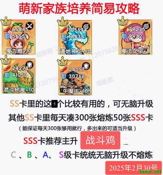 召唤与合成萌新必看!1.02版本入门指南,助你快速掌握推图技巧、资源优先级与养成核心,轻松升级觉醒,少走弯路! 萌新必看 推图优先考虑强度技巧,再看等级提升 熟练度觉醒开启:普通45级与49级,藏宝图、采矿及100级魔王一键功能,晶石商店与异次元宝箱熟练度礼包均可使用。 推图时,宝物优先提升召唤射手的百分比强度,并注重主力等级与保留等属性加成;装备侧重强度转化。挑战魔王时,宝物应强化召唤家族伤害、暴击转化及主力等级等英雄专属加成;装备则将伤害、暴击与强度按约13/5/6的比例自行分配,以达到最佳输出效果。 推广精英可增加单次购买资源量,提升橙红装备掉落率,提高每日活跃金币奖励,并拓展探索位置数量。 伙伴探索收益受攻击防御属性影响,属性越高收益比例越大。需消耗升星材料、木材、铁矿、铜钱,并在工坊制作图纸材料,通过升级和强化装备提升战力。 酒馆升级可提升伙伴等级上限(19级前),略微提高获取高级伙伴几率(仍靠运气),并在20级时刷新必出一名红色品质伙伴。 升级工坊可解锁高级图纸,用于制作高星伙伴升星材料、更强力的卡片及高级骨头。 魔法塔由图纸制成的卡牌与晶石组合而成,晶石数量取决于塔的等级和卡牌品质,晶石可通过熟练度、木材、铁材及伙伴装备在晶石商店兑换获得。 异次元可赌体力一把,红骨和8级装备是关键,5级骨材一次足矣。 在交易市场购入暴击道具、技能书及海盗、鳄鱼、狗熊、狗和野蛮人等角色。 锤手拥有5点血量与不朽,近战反制5,技能顺序为不朽、近反、熟练度、血量。 天狗初始伤害、法穿、沉默均为5,优先点满沉默,随后提升法穿、破甲、射程、伤害与魔攻属性。 地龙五射程,二号位五,三连发五,沉默全满后三连击,配合射程与二号位,魔物进攻。 女巫魔攻与魅惑各5,沉默与伤害全满,镜像技能为5级。 战斗鸡具法穿与沉默,三连击带波动,射程远,吸血强,战吼效果卓越。 每日可领大量体力,新人聚集地,邀请码:1120204,加入群聊q272075620。 |
