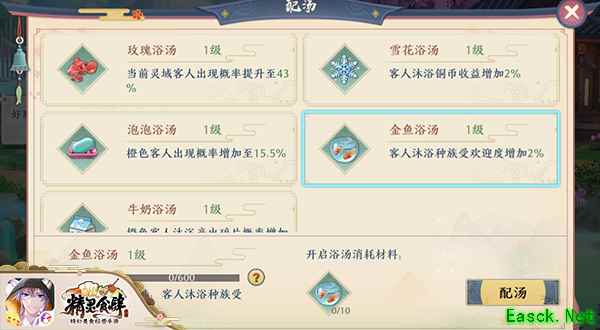 还可以配置不同的温泉汤,达到不一样的效果。玫瑰汤、泡泡浴、牛奶汤、金鱼汤,每种特色温泉汤,都拥有特殊加成,同时分别满足不同类型客人的需求。