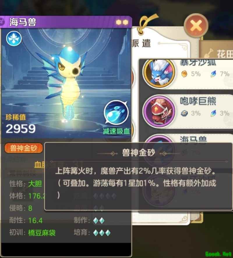 第二档需至少含一个橙色词条,其出现概率略高于紫色词条,但整体几率仍不算高。闪光和异色等常见品级的魔兽也有一定概率出现,建议多捕捉以增加获取机会。