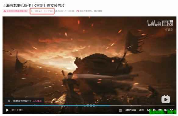 《古剑》预告火爆:播放量破700万 B站全站热度第4