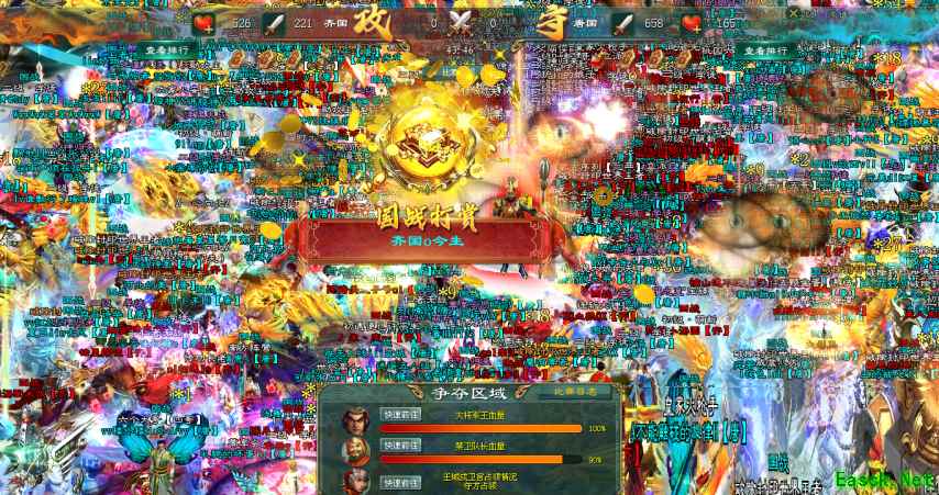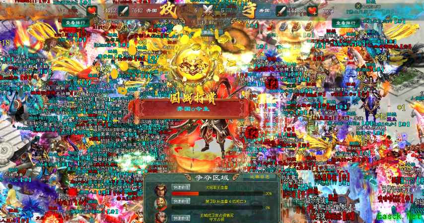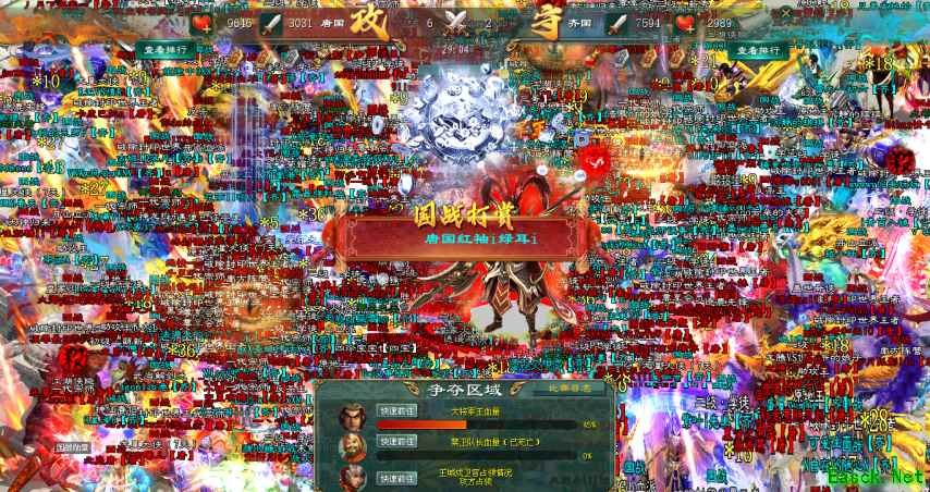 “杀~~!”齐国大军如饿狼扑食,丝毫不在意唐军劈砍在自己身上的伤害。他们一律和平模式目标锁住小将就是狠杀。战刀劈砍声、技能爆炸声、将士的呼喊冲杀声震破九霄,直冲云外。小将血量以肉眼可见的速度暴跌。唐国守军虽浴血死战,却挡不住齐军如狂涛般的攻势。激战10分钟后,随着一声轰然巨响,小将倒下!齐国将士来不及欢呼,瞬间接到家族令转战大将。开启他们的第二战场。 唐国指挥官临危不乱,大令紧急发出:“死守大将!人与大将共存亡!”绿色光芒闪现,一道防守大令凭空出现在大将上方。唐国勇士从四面八方驰援过来,大将阵前瞬间筑起一道道人墙。齐国的攻势受阻,攻击阵型被推阻到大将外围。但是齐国将士丝毫不惧,被杀了就原地起来,凭借自身敏捷的身手穿插其中锁住大将继续攻击。几分钟后,大将血量剩余65%,齐国家族令再度撕裂长空,各个家族的勇士们如尖刀直插敌方阵营,刀光剑影中,两国将士展开贴身肉搏,斩杀人头数和原地数成倍飙升。 “稳住!改盟国模式,大招准备!”齐国指挥官突然大喊。当大将血量跌至50%时,齐国早已蓄势待发的群攻大招轰隆隆全都攻击在大将和接令出现的唐军身上。火雨、冰雹、利剑不断飞射,交织成死亡之网。唐国将士红着眼冲杀,寸土不让,技能光效染红半边天,所有将士倒下之后又瞬间原地复活,谁也不想错过这场杀戮盛宴。 双方将士杀的都很过瘾,而此时大将血量仅剩35%!唐国指挥官嘶吼着拉出大令:“放弃城管!所有人回防大将!”令出即行,所有唐国将士接令,在大将周围结成一道密不透风的防线。齐国将士岂肯罢休?大令再度拉出,“兄弟们,成败在此一举,跟我一起拼了!”