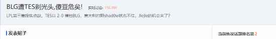 值得一提的是,从年初Xun选手离队开始,BLG战队在今年已经更换了三次打野,shad0w已经是BLG近两年来的第四任打野选手了。对此不少玩家表示,BLG是不是又要换打野了?截止至发稿时,话题“BLG遭TES剃光头,傻豆危矣!”登上贴吧热议榜第二位。