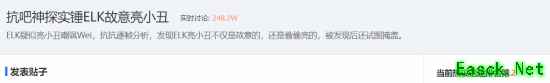 对此有不少网友认为,ELK这是在阴阳怪气前队友Wei。Wei选手今年原本在BLG战队担任打野,后在6月中旬离队,并在7月份加入IG战队。截止至发稿时,话题“抗吧神探实锤ELK故意亮小丑”登上贴吧热议榜第二位。