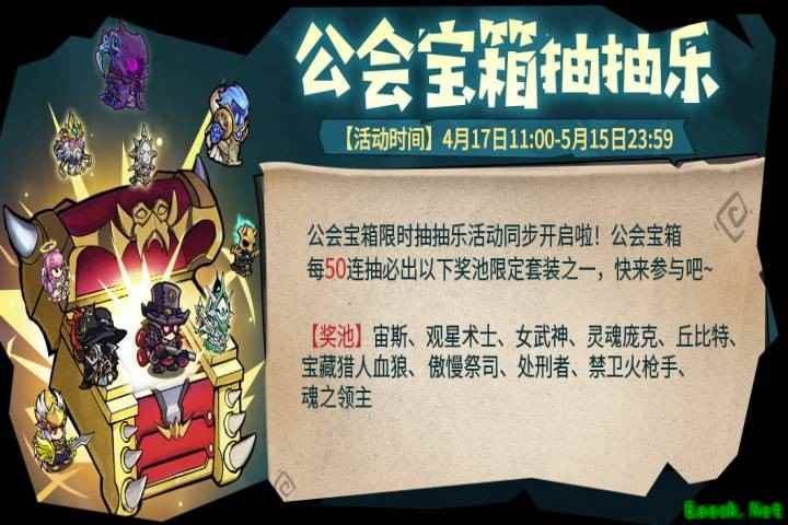 公会宝箱抽抽乐开启,50连抽必出奖池限定套装! 公会宝箱限时抽抽乐活动开启!公会宝箱每50连抽必出下列特效套装之一,快来参与吧~ 以上就是失落城堡X不思议联动版本的全部内容啦~宝藏猎人们,快叫上你们的伙伴,与冈布奥携手冒险吧!
