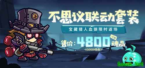 埃拉西亚大陆的冈布奥探险队成员们误入了异界城堡,冒险者、血狼、雅典娜冈布奥在喝下随手捡到的药水后陷入了狂暴…… 活动期间通过与活动NPC对话开启异化联动BOSS冈布奥探险队(第三关),击败后将在城堡随机库中永久解锁该联动主题的武器和神秘奖章。 同时击败冈布奥探险队达到一定次数,可获得相应奖励哦: 第一阶段:累计击败冈布奥探险队1次,奖励:公会宝箱钥匙*1 第二阶段:累计击败冈布奥探险队2次,奖励:公会宝箱钥匙*2 第三阶段:累计击败冈布奥探险队3次,奖励:(头套)冈布奥(650) 2、不思议联动套装—宝藏猎人血狼限时返场 售价为4800魂晶(原价6000魂晶打八折)