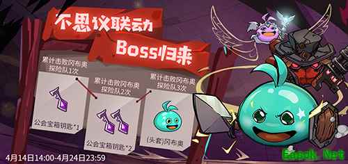 没想到居然可以再次和不思议迷宫联动,这波冈布奥又一次来到了失落城堡,是敌是友可能还需要老铁们自己深入了解一下,反正我看这帮“马铃薯”来势汹汹,来者不善,来而不往非礼也! 那么话不多说,多说无益,先上一波福利,大家一起压压惊! 一、活动时间 4月14日14:00-4月24日23:59 二、联动内容 1、不思议联动Boss归来!