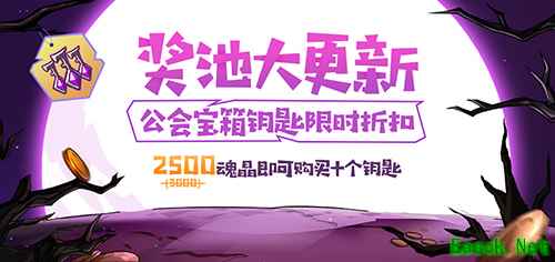 5、奖池大更新,公会宝箱钥匙限时折扣:2500魂晶即可购买十个钥匙(原价3000魂晶)