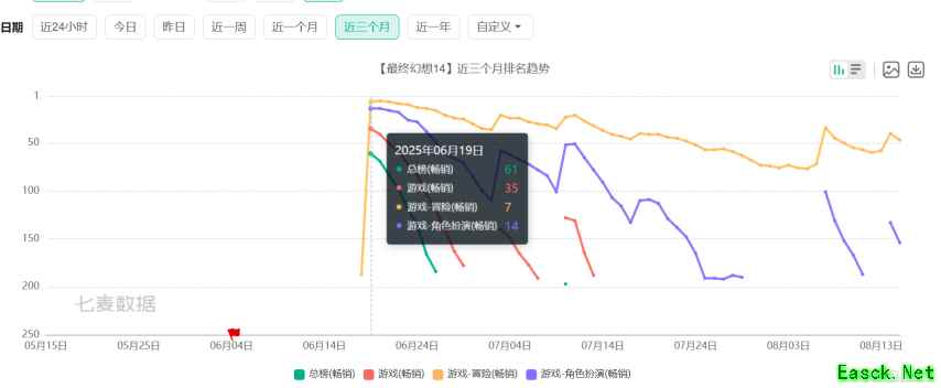 下滑的原因则是游戏品类受众偏窄,尤其是游戏本身的剧情没有代入感,偏西方的人物设计难以让国内玩家共鸣,过于庞杂的数值体系也让玩家更难上手。 最近的7月收入已经下滑到600万左右,从当前数据来看,应该会进入缓慢下跌的周期。不过总体上今年总流水破2亿估计能做到,终归算是一个好消息。不过如果后续官方运营找不到突破的方法,游戏的后续表现很难会有起色了。 《最终幻想14:水晶世界》 作为《最终幻想》系列的经典IP,《最终幻想14》端游自运营11年以来,经久不衰,玩家人数不断创新高,在全球累计账户登录数超过3000万。因此当腾讯公布了手游版《最终幻想14:水晶世界》时,也让众多玩家期待不已。