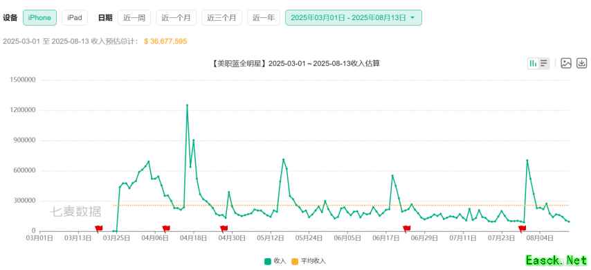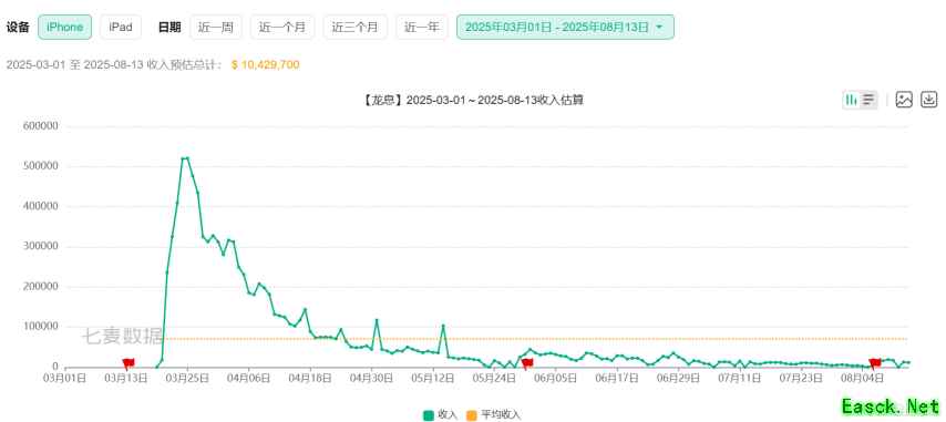 游戏于今年3月19日上线,凭借此前积攒的用户基础,游戏上线首月表现相当亮眼,首月流水约为8600万,4月份收入微降,为6900万左右。不过需要明确的是,由于游戏是在3月19日上线,所以3月的时间只有10天,按日均收入估算下滑很快。