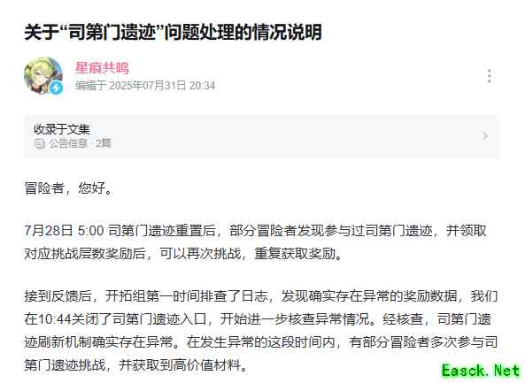 但《星痕共鸣》上线没多久,就发生了多个运营事故。 游戏刚上线前几天,服务器就一直无法正常登录,引发了不少玩家的不满。 在游戏上线不到一周的时候,官方直播间在中场休息时,工作人员忘记关闭麦克风,于是主持人私下聊天吐槽说出的“woc,他们怎么这么**的会说话呢”,就这么传遍了直播间,遭到玩家吐槽。 后续游戏中又出现了毁灭性BUG,作为游戏内氪金养成大头的战斗幻想系统,需要大量金色材料来合成,氪金的话可能需要一两万,平民玩家肝也需要好几个月,但因为BUG在游戏爬塔系统里只能获取一次的金色材料可以无限刷取。许多人就开始卡bug。 7月28日,在早上5点更新完成后,有玩家发现在“司第门遗迹”20层爬塔副本打完Boos以后直接退出,就可以无限刷取金色材料的bug(金色材料大约40米一个),许多人就开始卡bug。 这次腾讯出手救场了。先是发布长文应对爬塔问题解决,其中包括大量分析数据图表等,并进行补偿,随后又发布长文修复高达142项BUG外加赠送时装。