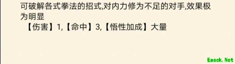 造成少量单体伤害并封穴一回合,伤害还不如普通攻击,副本中基本无用。 冷却:3 内力:100 破功式效果