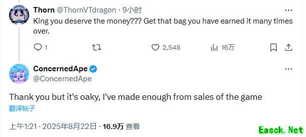 8月20日《无限暖暖》宣布将与知名模拟经营游戏《星露谷物语》联动后,今日(8月22日)《星露谷物语》制作人发布推文,表示星露谷与其它游戏联动时,从不收取联动费用,仅因为喜欢其它游戏或玩家喜欢而联动。同时在评论区表达自己已经从游戏本体中赚到了足够的钱。 《无限暖暖》联动《星露谷物语》宣传PV: |
