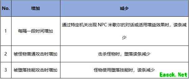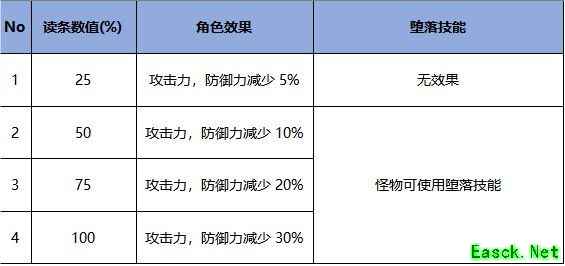 【堕落读条】 进入黑色大地战场副本后,屏幕上方会出现紫色读条,对玩家施加减益效果,同时激活Boss精英怪的特殊技能。 堕落读条变化条件如下