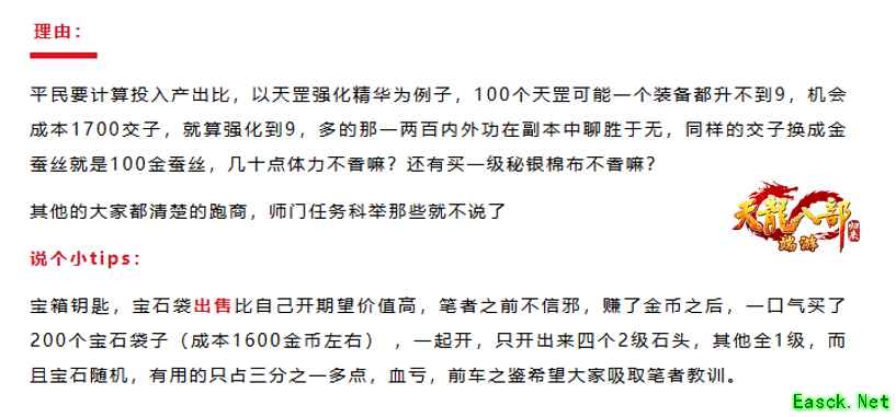 《天龙八部·归来》端游开服也有一段时间了,我估计很多回归的老兄弟,都跟我一样,有过一段迷茫期。 看着大佬们一身闪亮的装备,再看看自己的背包,总会下意识地焦虑:是不是该充钱了?这游戏,不花钱真能玩吗? 我一开始也这么想。拿到官方送的宝箱钥匙、宝石袋,就忍不住右键点开,总幻想着自己能一发入魂,结果次次都是差一点运气。 就在我快要放弃的时候,朋友发来几篇攻略,甚至还有《轻松做到1600属性且拥有双十鸟人》。看完之后,我只能说,茅塞顿开! 我结合了好几篇大神攻略,总结出了几个普通玩家也能立马上手的赚钱秘籍,今天分享给大家。 第一招:反向炼金术,卖掉所有梦想 这是一切的基础。从现在开始,你刷副本、做任务掉的那些高价值,但结果不确定的东西,比如天罡强化精华、金刚砂、干淬神玉、宝箱钥匙、宝石袋……别犹豫,不要自己用,全部挂到交易行换成稳定的交子和金币! 攻略里的大神算过一笔账,非常现实:100个天罡强化精华,自己点可能一件装备都升不到9,但卖掉换来的1700交子,却可以实打实地换成100个金蚕丝,带来几十点体力提升。 这笔账,必须得算清楚。把所有和概率强挂钩的高价值物品,都变成我们背包里稳稳当当的货币,这是平民玩家积累资本的第一步。 第二招:水牢当成工资卡,每周必刷 攻略里反复强调,水牢是平民最容易和大佬拉平的副本之一,是每周稳定的交子和绑元大头。而且是肉鸽玩法,不怎么看自身属性,更看重团队配合和BUFF选择。 我研究了一下,套路基本是固定的:开局全队尽量选雷系或冰系的BUFF,别选杂了,因为三个同系BUFF能触发强力效果。 雷系范围大,频率高,最有利于触发5%的秒杀;冰系控制足,能争取应对时间。防守的核心,就是后期保证每个方向都有少林僧人的召唤BUFF,这个僧人血无限还能一直嘲讽,是后期防守的绝对核心。 第三招:雕纹/武魂转盘的数学游戏,用脑子赚钱 这招是我觉得最牛的,攻略里的大神,竟然算出了一个用低价技能书降低转盘成本的公式! 简单来说,就是通过计算各种材料在转盘里的积分价值,和它们在交易行的金币价值,来找到一个最优解。 比如,转一轮雕纹最高档需要4000元宝的价值,但你放一个当时66金币一本的珍兽技能书进去,它在里面能抵扣400元宝的积分。 这意味着,你用66金币(当时约等于132元宝),实现了400元宝的效果!用这个方法,我当时转一轮的成本,直接从4000元宝暴降到了660金币,也就是1300多元宝,相当划算。转出来的热门雕文,一个就能卖几千金币,利润非常可观。 第四招:重新审视生活技能,当个版本倒爷 除了这些,攻略还点醒了我——要时刻关注市场。比如,60级的手工,成本也就20金币左右;80级的手工,光一个三级秘银就要250金,成本直接飙升到300金。 所以,在开服前期,与其冒险去做80装备,不如直接当个原材料贩子,把自己帮会里采的矿、自己种的麻布,趁着市场需求大,高价卖出去,风险小,收益稳定。 按照这些秘籍去新服开荒了,我现在的状态是:交子多到可以随便点心法,金币足够我把一身宝石慢慢换到3级,甚至还能有点闲钱,去倒卖倒卖材料。 有了钱之后,可以说整个游戏体验都变了。 不再为点一下心法就没了的交子而发愁;可以用自己赚的金币,去交易行从容地挑选适合自己的装备;甚至还有余力,去打造一只属于自己的极品宝宝。不仅不用投入,反而还成了个可以通过智慧和努力,获得回报的聚宝盆。 我这才真正理解了《天龙八部·归来》端游轻松高福利的体现。不仅是各种福利,更是在机制上,给了玩家可以靠劳动发家致富的机会。 所以,所有还在为资源发愁的平民兄弟们,别再犹豫了。 一起来做一个理财大师吧。 在这个江湖里,用脑子,也能玩出一片天! |