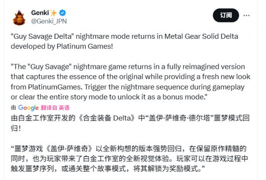 《合金装备3:重制版》将收录PS2原版游戏里的迷你游戏“Guy Savage”。 ![]() “Guy Savage”原本是PS2游戏中的彩蛋。这一基础砍杀游戏由Konami资深游戏制作人Shuyo Murata编剧并执导。后来Shuyo Murata还以未署名身份担任过《合金装备4》的联合导演。 ![]() 在《合金装备3》发售后被问及这款迷你游戏时,原导演小岛秀夫曾透露,自己最初打算收录的是《宇宙巡航机》(Konami开发的2D横向卷轴飞行射击游戏),但最后决定收录一款原创游戏。 此外,“Guy Savage”曾计划发展成为一个完整正式游戏,但最终被取消。 如今在《合金装备3:重制版》中,这个小游戏将会回归,并由白金工作室负责开发。 在游戏中,玩家可以通过两种方式解锁“Guy Savage”试玩:其一是通关任意难度;其二是在格罗兹尼格勒的拷问场景存档退出,再次进入时就会触发该小游戏。 《合金装备3:重制版》将于8月28日登陆PS5、Xbox Series X/S和PC平台。 ![]() ![]() |