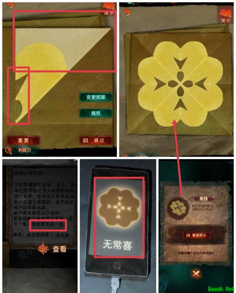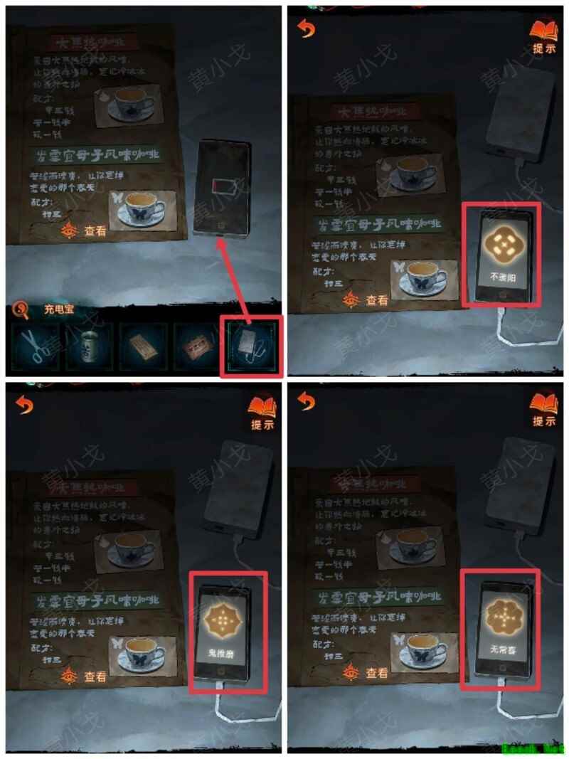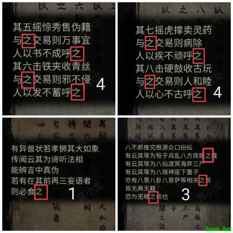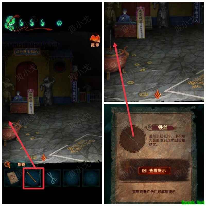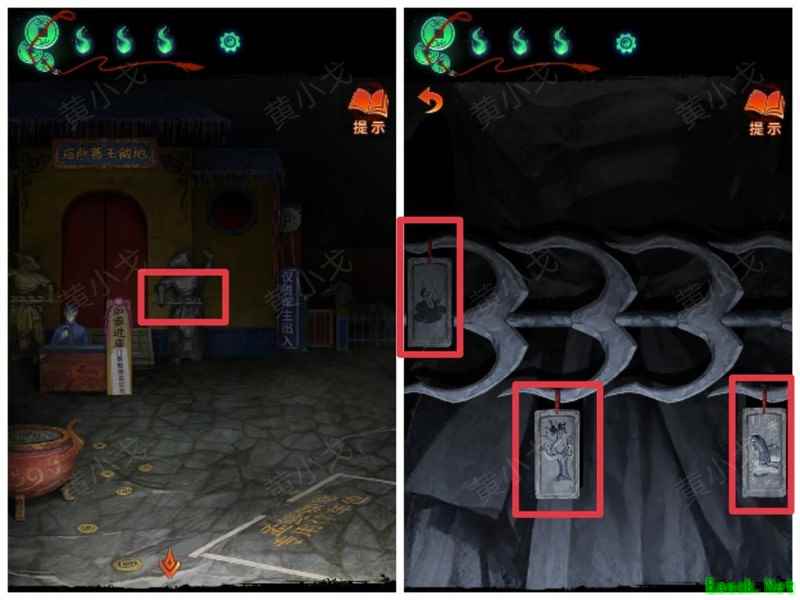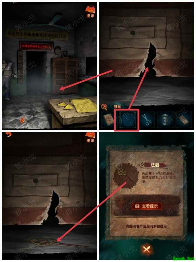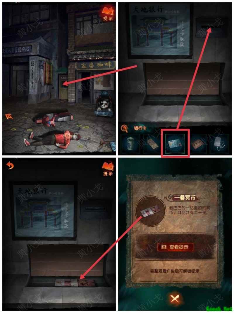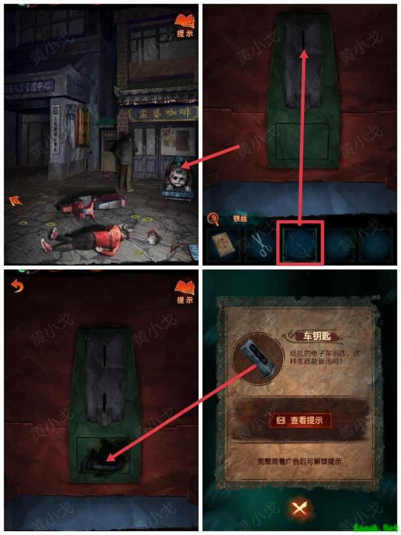纸嫁衣7卿不负第三章攻略来啦!本章剧情紧凑、谜题烧脑,从咖啡店到庙宇,从纸人手中获取道具到破解密码,每一步都需细心观察。掌握关键线索,顺利通关第三章,快来看看详细步骤吧!攻略 纸嫁衣7卿不负 第一章|第二章|第三章 第四章与第五章内容 第三章:听妄 (咖啡店外)观察门上图案,留意地面纸钱共7张。 (庙外)查看纸保安手机(注意地上纸钱:6张) 点击查看马面手中武器,留意牌子图案与位置。 点击牛头手中的武器,参照咖啡店门上的图案及其位置,再结合马面武器上牌子的图案和位置,调整牌子的位置。 触发机关后,从牛头手中取得,从马面手中取得。 将粗香插入香炉,点击香炉拜三下,得到铁丝。 在咖啡店外,点击摇摇车,用铁丝钩住投币口,打开盖子,取得车钥匙。 用开启庙外停车场大门;完成华容道小游戏,将红色车辆驶出。 在纸人手中取得小物件与手串。 (咖啡店外)点击门,使用解锁上方锁具。 推开咖啡店门,触发剧情,获得。 将交给八不郎,再把放他手中,请他帮忙磨成。注意地上有6张纸钱。 查看书架上的书,注意之字出现次数减一。 点击柜子查看菜单,记住大蕉热咖啡配方:辛三钱、苦一钱半、酸一钱。 点击秤后,按照菜单配方(辛三钱、苦一钱半、酸一钱),依次倒入两杯辛、一杯半苦和半杯酸。注意每种材料的重量比例:一杯辛为1.5,一杯苦为1,一杯酸为2。 获得大蕉热咖啡、甘味原料和苦味原料。 (咖啡店外)将倒在断头外卖员处,再将与倒入杯中,制成。 (庙外)将饮料递给保安 点击查看墙上花圈排列成的七一字样,注意地面纸钱7张、纸马6匹。 点击桌子,放置手串;依照无字谶图案调整红珠位置,得到经文。 在咖啡店点击WIFI密码牌,可得到一部。随后取出,依据提示内容(马、纸钱、花圈、之),正确输入密码8267112即可。 纸马:庙内6张,庙外1张,马面算1张,共计8张。 纸钱在庙里7张、庙外6张、咖啡店外7张、店内6张,总计26张。 花圈排列成七一字样,悬于庙墙之上。 书中之字共出现12次,更新后的密码为8267212。 进入直播间购物,前往地葬罗王菩萨庙,完成俄罗斯方块小游戏。 通关游戏后可获得银行卡、挂牌和充电宝三件物品。 在咖啡店外,使用天地银行自助机,插入银行卡,领取一叠冥币。 在咖啡店柜台发现手机,用充电宝充电后解锁,获取关键线索。 在咖啡店外,点击办事处门,安装挂牌后开门。 点击桌子上的黄裱纸,使用利剪刀。 根据手机上的图案完成裁剪小游戏,所需材料为无常喜纸钱,可在窗口自助办理说明处获取,完成后可获得。 点击柜子,用铁丝勾出里面的法器。 点击八不郎,用一叠冥币换取空白冥籍。 在咖啡店点击墙上相框,先用法器拧开梅花螺丝,再用利剪刀拧开一字螺丝,取得照片。 完成庙剧情后,成功躲避鬼手小游戏。 将空白冥籍涂抹苦味原料,贴上照片并加盖印章,最终获得冥籍。 点击窗口,提交、和,获取线索(铃铛图案、左-壹二陆、右-肆叁伍)。 点击通往地下室的楼梯,根据办事处窗口获得的铃铛图案线索,按照左壹贰陆、右肆叁伍的顺序点击铃铛,依次触发后打开石门。 |