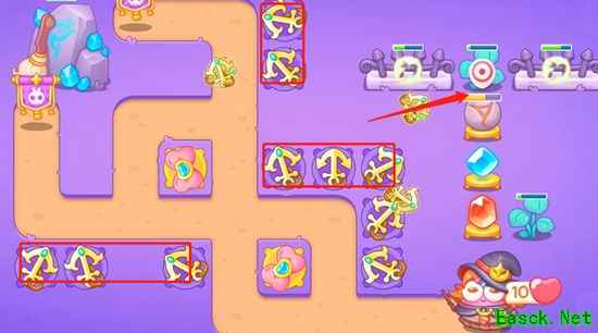 在保卫萝卜4的阿波与魔法宝藏系列关卡中,第92关迎来了一块全新的魔法石——火石。当玩家成功击破封印魔法球后,即可召唤全屏火石进行支援。此外,本关路线设计较为复杂,拥有左右两个出口且线路交叉,因此中间区域也需合理布置防御。为帮助大家顺利通过本关,以下带来详细的通关策略,供各位参考。 保卫萝卜4阿波与魔法宝藏第92关通关技巧分享 保卫萝卜4阿波与魔法宝藏第92关通关技巧分享 开局时在右侧放置船锚,无怪物时先清理下方宝箱,出现怪物后优先击杀。 接着继续增加船锚数量,同时打出魔法石备用,随后清理中间的宝箱和道具。 出口处的道具基本清理完毕,我们在放置船锚以确保伤害输出,右侧道具较多,需尽快将其全部清除。 最后全清后,有钱就继续放置船锚,建议沿两条独立路线建造,以提升伤害效率。 |