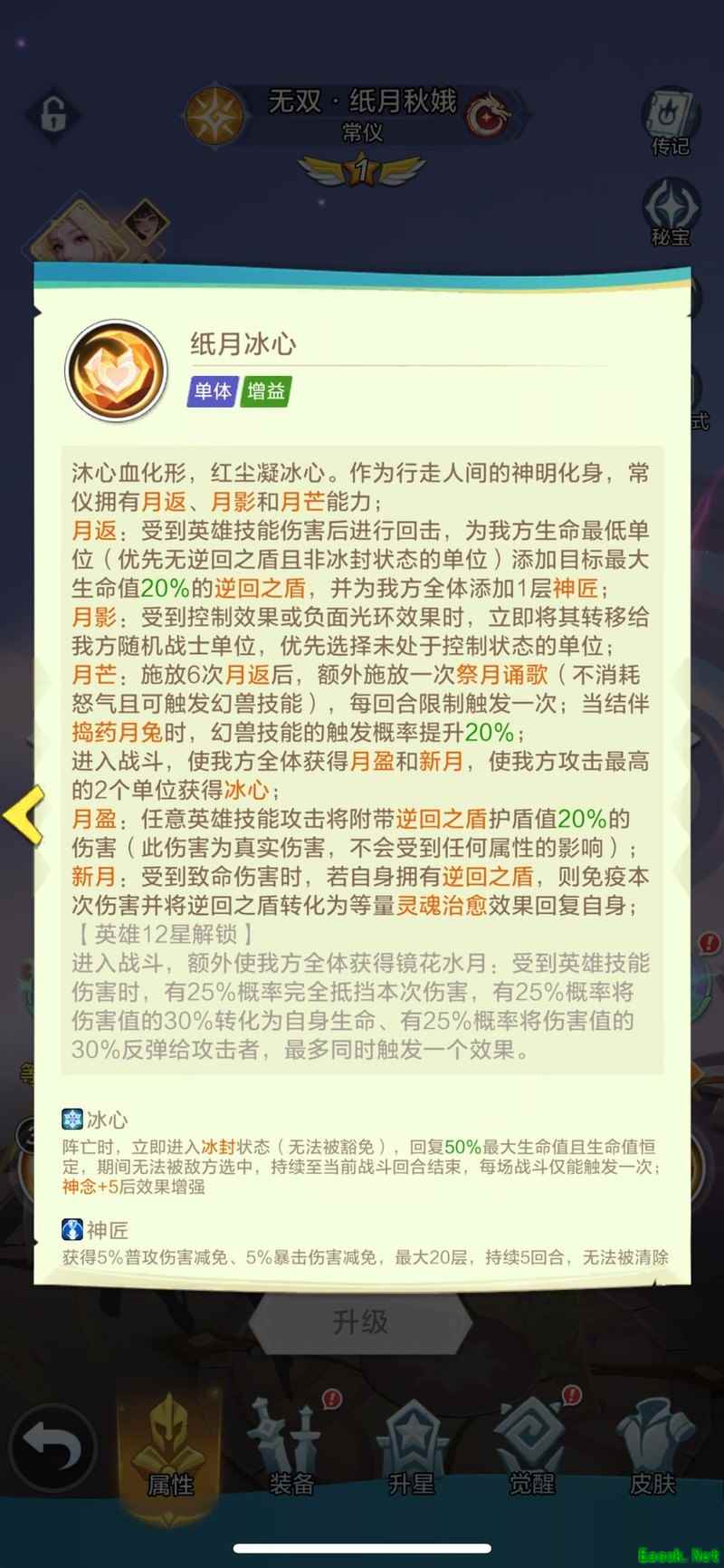 冰箱存在一个严重问题,除了千机和巫祝外,其他英雄在其中无法行动。这使得冰箱对逆击系来说是极强的增益与保命技能,但对于其他体系而言,这种保命效果却成了限制队友的负面状态,令人十分无奈。 巫祝的神5效果只对自己生效,提供保命和增强伤害的能力,对队友而言,关键在于快速集火击杀敌方核心角色,确保输出高效集中,这也正是粉毛在高端局中表现强势的核心原因。 因此,我多半会选择神5作为主C,尽量凑出巫祝组合,至于嫦娥,则依靠之前积累的战灵和兔子,再加上11星解锁的新月效果,搭配逆回之盾实现免死效果。