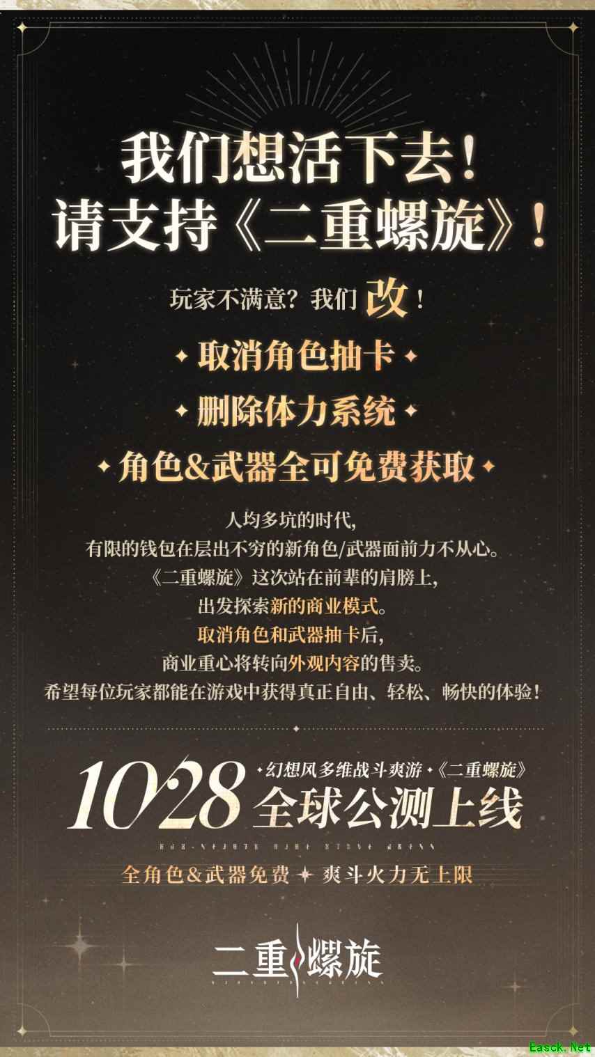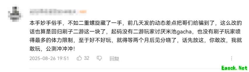 虽然游戏宣布这么大刀阔斧的改动后,具体的游玩体验还是未知数,但是有许多早就看不惯“米池”的玩家纷纷表示,既然《二重螺旋》愿意大胆创新改革二游,就愿意先支持第一波。