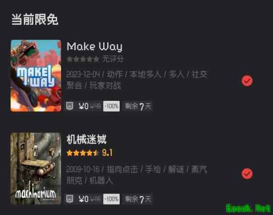 Epic本周限免游戏现已公布!本周送出冒险解谜游戏《机械迷城 (Machinarium)》以及多人竞速游戏《Make Way》,下周将送出冒险解谜游戏《纪念碑谷》和回合制策略游戏《The Battle of Polytopia》! 点击这里一键领取>>> 更多免费、折扣游戏推荐,来APP【找游戏】专区就够了! 《机械迷城》 《机械迷城(Machinarium)》中每个角色都是机器人,包括我们的小英雄,他将为了对付坏人并解救自己的女朋友展开了一系列的解谜,没有多余的对白,游戏情节和线索皆靠细腻的动画来表现。细腻的手绘水墨风格打造后现代机械场景画面,让玩家置身在这部充满后现代机械情调的游戏中时,俨然彷佛随着主人公一同冒险,一同前进,一同困惑于种种谜题,一同领略大机器时代的绮丽风光。 《Make Way》 在这款经典自上而下多人竞速游戏的现代版之中,绕圆圈加速,飞速通过铁路交汇道,溜过旋转滑梯,并释放古怪的武器。最大的亮点是什么?那就是赛道完全由你搭建哦。 本文由制作发布,未经允许禁止转载。 |